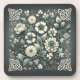 Soft florals intertwine with graceful Celtic knot motifs in a balanced folk composition filled with clover shapes, curling vines, and layered blossoms. Muted sage greens, warm ivory, and deep charcoal create a calm, heritage-inspired palette that feels both old-world and gently modern. The flowing symmetry and botanical details evoke cottagecore charm, Celtic folklore, and a quiet, storybook mood rooted in tradition and nature. AI generated artwork.