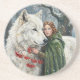 Posavasos White Wolf Redhead Druid Winter Berries Fantasy Ar