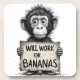 Posavasos Will Work for Bananas - Humorous Monkey Sketch
