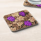 Astras en un vintage patrón de tapiz William Morris de uvas violetas profundas contra un fondo de cepas y hojas marrones de chocolate claro a oscuro, mejoradas digitalmente y coloreadas
