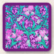 Semana Santa en un William Morris, Art Nouveau, huella textil de iris y hojas, realzada digitalmente y coloreada, en orquídea suave y turquesa, sobre un fondo morado amatista profundo