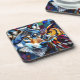A vibrant colorful ai illustration of a wolf and an owl in a mosaic stained glass effect. A nice coaster for those who love wildlife.