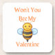 Won't You Bee My Valentine with a bee on a beverage coaster set, perfect for your favorite valentine or great conversation piece.