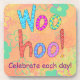 Diviértase entreteniéndose con estas divertidas y extravagantes galas WooHoo. Las palabras de personalizable Celebrar cada día bajo la imagen de texto de palabra WooHoo se pueden cambiar a tus propias palabras o personalizar con un nombre. El colorido fondo de arte gráfico con las palabras WooHoo en el arte de texto se personaliza con tu nombre. Las palabras WooHoo están en un fondo oscuro naranja y lime verde. El fondo del diseño artístico está texturado con flores y flores de contorno de línea. Colores: naranja azul turquesa verde azulado lima púrpura verde.