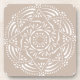 Esta mandala blanca se sienta sobre un fondo marrón claro o bronceado. El color es suave y natural. En algunas luces puede parecer un gris cálido. Parte de la colección Dagrewi Mandala.