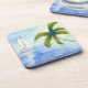 Playa tropical. Yate en el mar Palma en un día soleado. Acuarela. El ilustracion acuarela fue dibujado y escaneado. La imagen será a la vez un buen regalo y una magnífica decoración interior.