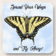 Personalize with an expression, text or name, or no text at all on this design of a black and yellow Western Swallowtail butterfly, one of the most beautiful large butterflies in the world, floating on a blue sky with puffy white couds. My original painting is based on photographs I took in my own butterfly-friendly garden in the Southwest.