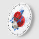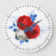 Este reloj de pared presenta una bonita disposición floral en rojo, blanco y azul. Está disponible en 2 tamaños en redondo y cuadrado