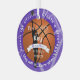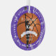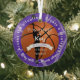 El ornamento de baloncesto en morado con un gráfico de baloncesto y jugador en el centro, tiene un ángulo único para crear un mantra positivo; un diseño magnífico incluye las palabras "(Evaluar la situación, Crear una estrategia, quedarse con ella, Saber cuándo, más Positividad es clave para ganar Diseñado por HAMbyWhiteGlove aka HAMbWG. 203-816-719 versión 2