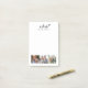 Modern family post nota que presenta 3 fotos familiares, escritura tipográfica ''notes' y un nombre familiar. Perfecto como regalo.