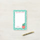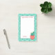 Esta almohadilla de notas Post-it® tiene un aspecto suroeste completo con una planta de cactus, en la esquina inferior derecha. en el fondo hay un patrón verde azulado y el texto dice: "La felicidad florece desde dentro", que se puede personalizar. También hay un área en la parte inferior que puede personalizar.