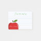 Estas son Notas personalizadas de Acuarela de Manzana Roja. Son un regalo divertido y personalizado para los maestros. Con una silueta de manzana de acuarela roja con el nombre del maestro en la esquina, puede personalizar el texto para decir director, bibliotecario u otra persona importante de la escuela. Perfecto para regalos de fin de año para maestros con diseños modernos y elegantes de acuarela.