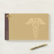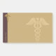Doble culebra caduceus. Icono de color dorado. Color de fondo personalizado. Texto personalizado.