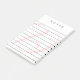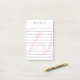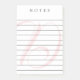 Post-its en linea con Notas escritas en la parte superior. Debajo de las líneas, un monograma rosa pálido con una fuente magnífica.