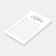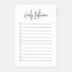 Moderno y sencillo de hacer lista de bloc de notas personalizado con nombre. Cabecera de nombre de guión de moda casual con 12 líneas de tarea con casillas de verificación. Texto negro sobre fondo blanco.