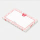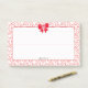 Utilice la plantilla de texto sencillo para agregar su nombre, iniciales o monograma. Muestra el amor cuando personalizas tus notas para esta fiesta El día de San Valentín con un simple patrón aleatorio de corazón rojo abierto. Hay un marco de doodle con bordes ondulados suaves recortados con un arco rojo. El área de escritura tiene líneas desvanecidas y su nombre en la parte inferior. Las notas pegajosas del jumbo son una idea divertida para pequeños regalos o favores partidarios para amigos, familia o compañeros de trabajo.