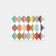 Estas notas tienen un diseño Bauhaus de diamantes superpuestos en colores retro.