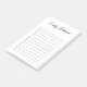 Listo y sencillo de hacer lista de bloc de notas personalizado con nombre. Cabecera de nombre de script casual con 12 líneas de tarea con casillas de verificación. Texto negro sobre fondo blanco.