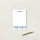 Notas pegajosas personalizados con letras azul art deco y una hilera de veleros azules a lo largo del fondo.