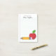 "Old School Rules" es una colección de productos brillantes, coloridos y personalizados con un ambiente retro-escolar que celebra los buenos y simples días de la educación. Los autobuses escolares y los lápices gruesos y buenas manzanas antiguas son sólo algunas de las imágenes familiares que aparecen en esta divertida pero práctica colección. Las imágenes se representan en un estilo de aplicación con costura falsa que realza el ambiente vintage. A los profesores, administradores de escuelas, profesores particulares y estudiantes les agradará usar estos productos, además son perfectos para dar regalos de agradecimiento a los profesores. Esta almohadilla Post-It Note presenta un aplicativo colorido de manzana y lápiz de puntas falsas con una designación personalizada en la parte superior de las notas.
