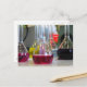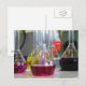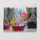 Postal con frascos que contienen líquidos coloridos. Química. Se puede usar para poscruzar.