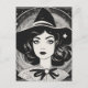 Este cautivador ilustracion blanco y negro de estilo vintage presenta una bruja mística de diseño retro clásico. Con su mirada penetrante, su cabello flotante y su gorra puntiagudo adornado con una estrella, esta bruja encarna una mezcla de encanto del viejo mundo y elegancia gótica. El marco celeste, con una luna giratoria y estrellas brillantes, añade un ambiente encantador a este mágico retrato. Perfecto para los fanáticos de la brujería, la estética gótica y el arte oculto vintage, este diseño exuda vibraciones brujas con un atractivo eterno. Ideal para ropa, decoración casera y accesorios, esta obra aporta un toque mágico a cualquier entorno.