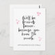 ¡Celebremos lo mejor de este Día de Galentine con una tarjeta que captura perfectamente la esencia de nuestro inquebrantable (y levemente incriminatorio) vínculo! Esto "Seremos Amigos Para Siempre... Porque sabes mucho", la carta es la mejor manera de compartir una risa mientras muestras tu aprecio por tu pareja en el crimen. Características: (1) Diseño divertido e ingenioso con escritura elegante y acentos cardíacos. (2) Fondo blanco con detalles en rosa suave para una moda y un aspecto moderno. (3) Texto de pie de página personalizable para agregar su propio mensaje o firma sentimental. (4) Cardstock de alta calidad con opciones de acabado mate o brillante. (5) Perfecto para el Día de Galentine, cumpleaños o cualquier ocasión para celebrar la amistad.