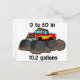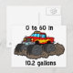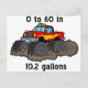 Un personalizado de un camión con grandes neumáticos rompiendo la tierra. Las palabras 0 a 60 en 10.2 galones que lo rodean. Intentemos al menos conservar nuestras reservas de gas.
