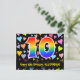 El frente de este divertido, emocionante y colorido diseño de tarjeta postal temática de cumpleaños presenta un gran número "10" con un patrón inspirado en gradiente de espectro de arcoíris. También presenta el mensaje "Feliz cumpleaños número 10", y un nombre de destinatario editable. La parte delantera también presenta un colorido y vibrante patrón de fondo de corazones amorosos. La parte trasera presenta un mensaje de saludo de cumpleaños personalizado, o quizás podría estar despejado y dejado en blanco si se va a escribir un mensaje a mano en su lugar. Una tarjeta postal de cumpleaños personalizable como esta podría ser una forma divertida de enviar un mensaje para celebrar el décimo cumpleaños de alguien. Las tarjetas postales como esta también podrían usarse para invitar a los invitados a una celebración de cumpleaños o fiesta que se celebra para alguien que está cumpliendo 10 años.