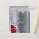 Una fiesta de guardar la fecha para una fiesta de cumpleaños número cien. Un oscuro fondo metálico falso plateado. Decorada con flores moradas oscuras y burdeos y rosadas rosas, purpurinas de plata falsa goteando, pinturas con goteo. Plantillas para un nombre y una fecha. El texto: Save the Date se escribe con un gran guión moderno de estilo con letras a mano. Sugerencia: Si no desea que se vea como una postal, haga clic en personalizar, vaya a la parte posterior y quite el separador y el sello postal.