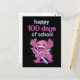Diseño lindo con un axolotl usando una mochila y sosteniendo un gran bolígrafo con la cita "Feliz 100 días de colegio". Feliz día 100 de la escuela o el jardín de infantes.
