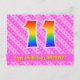 El frente de este diseño de tarjeta de cumpleaños animada, alegre y cariñosa presenta un gran número "11" con un patrón de gradiente de espectro de arcoíris, junto con el mensaje "Feliz cumpleaños 11", y un nombre de destinatario editable. La parte delantera presenta además un patrón alegre de formas de corazón y rayas de color rosa claro y rosa oscuro. La parte trasera presenta un mensaje de saludo de cumpleaños editable, o quizás podría borrarse y dejarse en blanco si se desea escribir un mensaje a mano. Una tarjeta de cumpleaños personalizable como esta podría ser una forma divertida de enviar un mensaje para celebrar el cumpleaños de alguien. Las tarjetas postales como esta también podrían usarse para invitar a los invitados a una celebración de cumpleaños que se llevará a cabo para alguien que cumple 11 años.