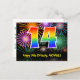 Postal 14 Cumpleaños – Patrón Divertido de Fuegos Artific