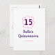 Postal 15 cumpleaños feliz cumpleaños rosa morado fecha