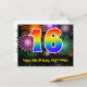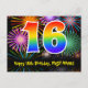 Postal 16 Cumpleaños – Patrón Divertido de Fuegos Artific