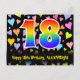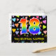 El frente de este diseño de tarjeta postal temática de cumpleaños colorido, emocionante y cariñoso presenta un gran número "18" con un patrón de gradiente de espectro de arcoíris, junto con el mensaje "Feliz cumpleaños 18", y un nombre de destinatario personalizado. La parte delantera tiene además un vibrante y colorido patrón de fondo de formas de corazón cariñosas. La parte trasera presenta un mensaje de saludo de cumpleaños editable, o quizás podría borrarse y dejarse en blanco si se va a escribir un mensaje a mano en su lugar. Una tarjeta postal de cumpleaños personalizable como esta podría ser una forma divertida de enviar un mensaje para celebrar el cumpleaños número dieciocho de alguien. Las tarjetas postales como esta también podrían usarse para invitar a los invitados a una celebración de cumpleaños que se celebra para alguien que cumple 18 años. [~Z0000448]