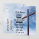 La postal de las escrituras inspiradoras representa un cielo azul con una cruz de madera y muestra la Biblia Verse 1 Juan 3:1, "Así es como sabemos lo que es el amor: Jesucristo nos dio su vida. Y deberíamos dejar nuestras vidas para nuestros hermanos y hermanas". Fotografía de Aaron Burden.*