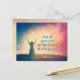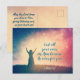 Hermosa postal inspiradora de las escrituras personalizado de la tarjeta postal representa a una mujer en un campo con las manos levantadas al Señor. Presenta la Biblia Verse 1 Peter 5:7, Pasa todo tu cuidado con él porque te cuida.*