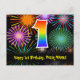Postal 1er Cumpleaños – Divertido patrón de fuegos artifi
