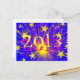 Un fuego que explota en una ducha de estrellas doradas y rosas deslumbrantes contra un cielo azul. Postcard con un diseño de personalizable amarillo, rosa, azul y blanco para que usted pueda personalizar con su propio texto, imágenes e ideas. El texto puede cambiarse fácilmente utilizando la plantilla proporcionada o haciendo clic en el botón "Personalizar" para realizar más modificaciones. Creado con fotografías originales y técnicas digitales de Jess Perry.