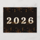 2026,Feliz año nuevo!Tarjeta de fondo negro Purpurina dorado