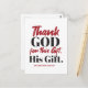 Gracias a Dios por este regalo, su regalo. 2 Corintios 9:15 versículo biblia. Un regalo cristiano y un regalo de Navidades.