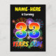 La parte delantera de este vibrante y animado diseño de postales de invitación a fiestas de cumpleaños incluye un nombre personalizado, un divertido patrón inspirado en fuegos artificiales de celebración, y el mensaje "¡33 AÑOS!", con un colorido patrón de gradiente inspirado en el espectro del arco iris. En la parte posterior aparece un mensaje personalizado que podría describir cuándo y dónde se está reteniendo al fiesta, además de otra información pertinente. Postal invitativa como esta puede ser enviada a potenciales invitados de una fiesta de cumpleaños que se lleva a cabo en celebración del 33 cumpleaños de alguien. [~Z0000452]