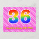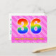 El frente de este diseño de tarjeta postal de cumpleaños feliz, divertido y alegre presenta un gran número "36" con un patrón inspirado en el gradiente del espectro del arcoíris, junto con el mensaje "Feliz cumpleaños 36", y un nombre de destinatario editable. La parte delantera presenta además un alegre patrón de rayas rosa oscuro y rosa claro con formas de corazón. La parte posterior presenta un mensaje de saludo de cumpleaños personalizado, o quizás podría estar en blanco si se desea escribir un mensaje a mano. Una tarjeta postal de cumpleaños personalizable como esta podría ser una forma divertida de celebrar el cumpleaños número treinta y seis de alguien. Las tarjetas postales como esta también podrían usarse para invitar a los invitados a una celebración de cumpleaños o fiesta que se organice para alguien que cumple 36 años. [~Z0000449]