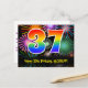 El frente de este diseño de tarjeta postal temática de cumpleaños colorido, emocionante y divertido presenta un número grande "37" con un patrón de gradiente de espectro de arcoíris inspirado, junto con el mensaje "Feliz cumpleaños 37", y un nombre de destinatario personalizado. La parte delantera tiene además un patrón de fondo colorido y vibrante inspirado en la apariencia de fuegos artificiales celebratorios que estallan. La parte trasera presenta un mensaje de saludo de cumpleaños personalizable, o quizás podría estar despejado y dejado en blanco si se va a escribir un mensaje a mano en su lugar. Una tarjeta postal de cumpleaños personalizada como esta podría ser una forma divertida de reconocer el cumpleaños número treinta y siete de alguien. Tarjetas postales como esta también podrían utilizarse para invitar a los invitados a una fiesta de cumpleaños que se celebra para alguien que está cumpliendo 37 años. [