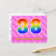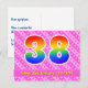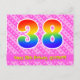 El frente de este diseño de tarjeta postal temática de cumpleaños feliz, amoroso y alegre presenta un gran número "38" con un patrón de gradiente de espectro de arcoíris, junto con el mensaje "Feliz cumpleaños 38", y un nombre de destinatario personalizable. La parte delantera también tiene un patrón de rayas rosa oscuro y rosa claro con formas de corazón. La parte trasera presenta un mensaje de saludo de cumpleaños personalizado, o quizás podría estar en blanco si se desea escribir un mensaje a mano. Una tarjeta postal de cumpleaños personalizable como esta podría ser una forma divertida de enviar un mensaje para celebrar el cumpleaños número treinta y ocho de alguien. Tarjetas postales como esta también podrían usarse para invitar a los invitados a una celebración de cumpleaños o fiesta que se organice para alguien que cumple 38 años.