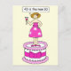 Una dama personalizado de pie sobre un pastel gigante con un cóctel en una mano, diciendo "40 es el nuevo 30".