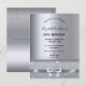 A modern, stylish and glamorous invitation for a woman's 40th birthday party. A faux silver metallic looking background with an elegant faux silver bow, ribbon and sparkle. The name is written with a modern black hand lettered style script. Templates for your party details.