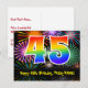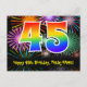 Postal 45 Cumpleaños – Divertido patrón de fuegos artific