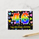 El frente de este divertido, colorido y emocionante diseño de tarjeta postal temática de cumpleaños presenta un gran número "46" con un patrón de gradiente de espectro de arcoíris. También presenta el mensaje "Feliz cumpleaños 46" y un nombre de destinatario personalizado. La parte delantera presenta además un vibrante y colorido patrón de fondo con formas de corazón amorosas. La parte trasera presenta un mensaje de saludo de cumpleaños personalizado, o quizás podría estar en blanco si se desea escribir un mensaje a mano en su lugar. Una tarjeta postal de cumpleaños como esta podría ser una forma divertida de enviar deseos de cumpleaños a alguien que está celebrando su cumpleaños número cuarenta y seis. Tarjetas postales como esta también podrían utilizarse para invitar a los invitados a una celebración de cumpleaños o fiesta que se organice para alguien que cumple 46 años.